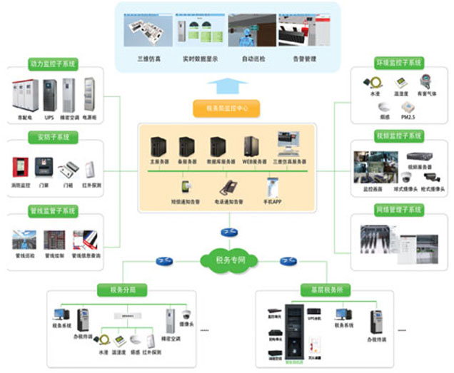 煙臺(tái)市稅務(wù)局信息中心應(yīng)用DF7101機(jī)房基礎(chǔ)設(shè)施管理系統(tǒng),將市局信息中心機(jī)房和下轄的14個(gè)區(qū)縣分局機(jī)房及若干基層分局機(jī)房進(jìn)行統(tǒng)一監(jiān)控,解決了市局和縣區(qū)局之間機(jī)房監(jiān)控各自為政、信息孤島的問(wèn)題。平臺(tái)對(duì)各機(jī)房動(dòng)力環(huán)境監(jiān)控系統(tǒng)、門禁系統(tǒng)、視頻監(jiān)控系統(tǒng)、設(shè)備資產(chǎn)、模塊化機(jī)柜等統(tǒng)一監(jiān)控管理,并通過(guò)3D建模實(shí)現(xiàn)設(shè)備的智能巡檢,實(shí)現(xiàn)了對(duì)機(jī)房基礎(chǔ)設(shè)施的規(guī)范化管理,對(duì)出現(xiàn)的各類問(wèn)題及時(shí)發(fā)現(xiàn)和解決,減輕運(yùn)維壓力,減少因設(shè)備及環(huán)境問(wèn)題對(duì)辦稅業(yè)務(wù)的影響。