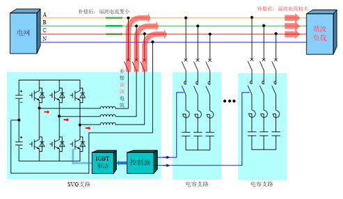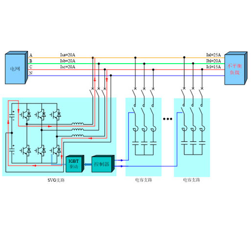? 與固定電容器補償聯(lián)動,采用SVG的控制器,統(tǒng)一控制電容器的投切,既能減少體積又方便協(xié)調(diào)控制。