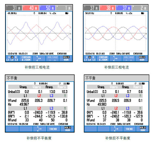 E5011控制器通過電流傳感器實時檢測系統(tǒng)電流,并分析判斷系統(tǒng)是否處于不平衡狀態(tài),同時計算達到平衡狀態(tài)時所需要的補償電流,并控制逆變器產(chǎn)生電流,使電流從大的相轉(zhuǎn)移到小的相,最終使三相電流達到平衡狀態(tài)。